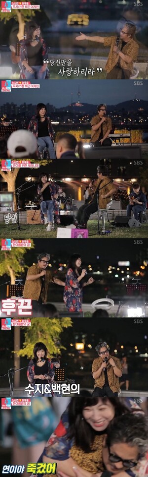 적은 수의 관객 앞에서 버스킹을 시작한 부부. 대표곡 '만남'을 부르자 사람들이 모여들기시작했다. 이어 이무송의 '사는게 뭔지'에 이어 수지, 백현의 'Dream'까지 하모니를 맞췄다. 어느덧 밤이 깊어가며 객석의 열기는 더욱 뜨거워졌고 두 부부는 간식 타임에 즐거워하며 보답의 의미로 깜짝 댄스까지 펼쳤다.