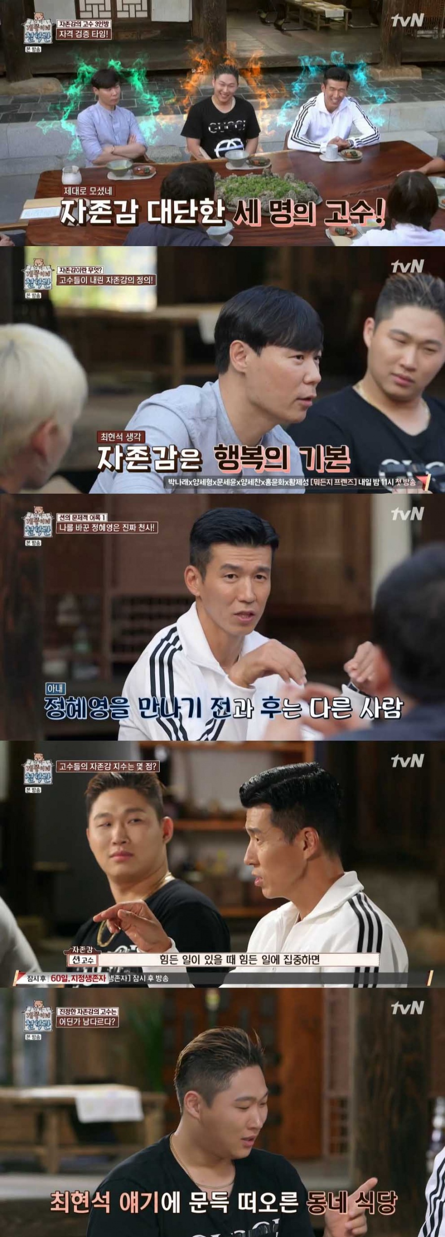 테스트를 통해 고수들의 자존감 지수도 밝혔다. 션은 57점으로 가장 높은 점수를 받은 반면 최현석은 3점을 받아 충격을 불렀다. 최고의 자존감을 보인 션은 "힘든 일이 있을 때 시선을 돌려 행복한 일에 집중하면 오히려 행복해진다"고 조언했다.