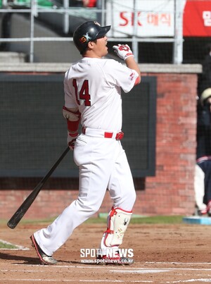 최정은 17일 인천 SK행복드림구장에서 열리고 있는 '2019 신한은행 MYCAR KBO리그' LG 트윈스와 경기에 3번타자 3루수로 나와 3-2로 앞선 3회 1사 3루에서 홈런을 터트렸다. 이틀 연속 홈런이자 시즌 22호, 통산 328호 홈런이다.