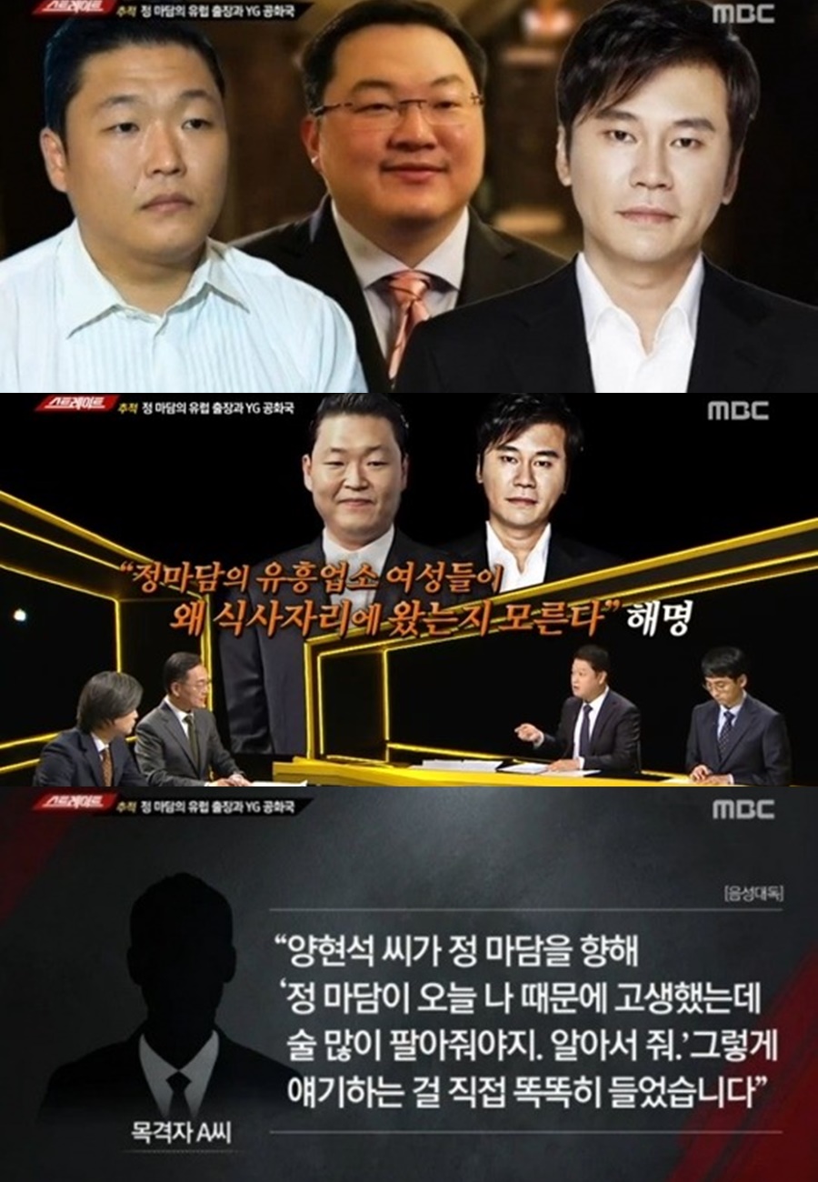싸이는 양현석의 성접대 의혹과 관련해 지난달 참고인 조사를 받았다. 양현석에게 조 로우를 소개해준 연결고리로 지목된 싸이는 경찰에서 참고인 자격으로 성접대 의혹과 관련해 사실관계를 진술한 것으로 알려졌다. 조 로우는 말레이시아 재력가로 알려진 인물.