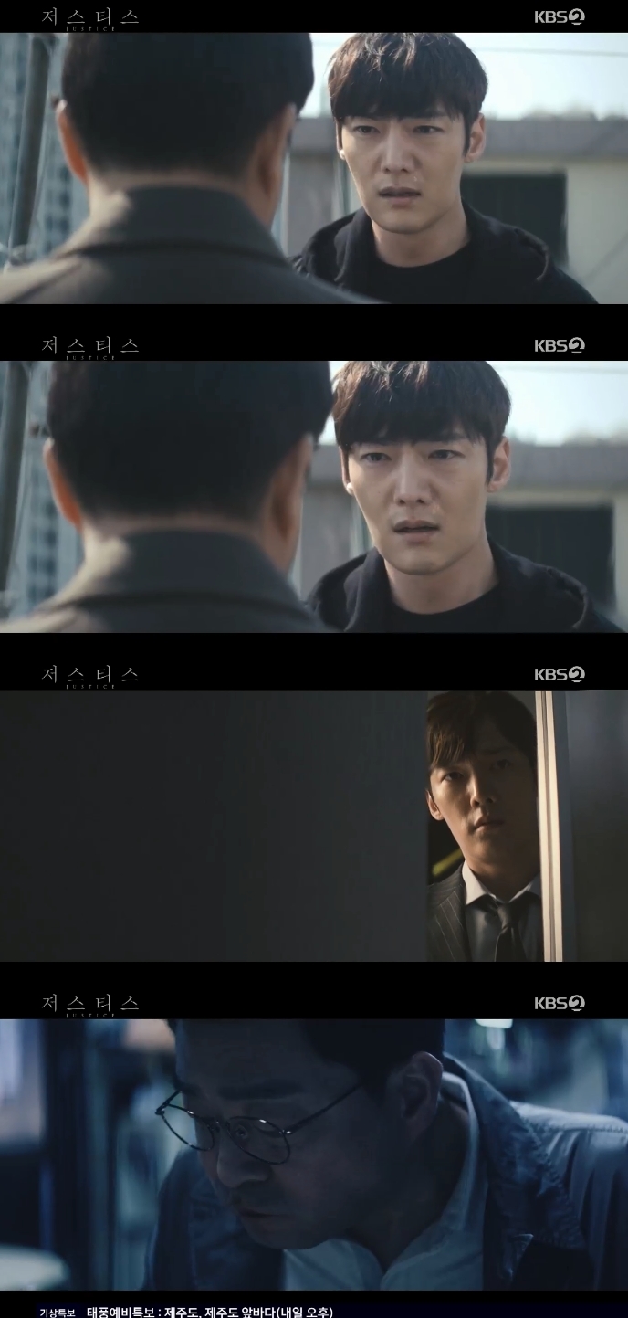18일 방송된 KBS 2TV 새 수목드라마 '저스티스'(극본 정찬미, 연출 조웅, 황승기, 제작 프로덕션 H, 에프앤 엔터테인먼트)에서는 피의자를 빼내기로 한 이태경(최진혁)과 송우용(손현주)이 모습이 그려졌다.