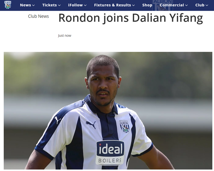 웨스트 브로미치는 19일(한국 시간) 홈페이지에 "론돈이 오늘(19일) 중국 슈퍼리그의 다롄 이팡에 합류했다. 이적료는 비공개다. 베네수엘라 축구 국가대표인 론돈은 지난 시즌까지 뉴캐슬 유나이티드를 이끈 베니테스 감독의 다렌 이팡으로 향한다"고 했다.