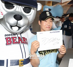 [스포티비뉴스=창원, 곽혜미 기자] 19일 오후 창원NC파크에서 열릴 예정이었던 2019 KBO 퓨처스리그 올스타전이 우천으로 연기가 됐다. 상무 조수행이 팬사인회에서 포즈를 취하고 있다. 스포티비뉴스=창원, 곽혜미 기자