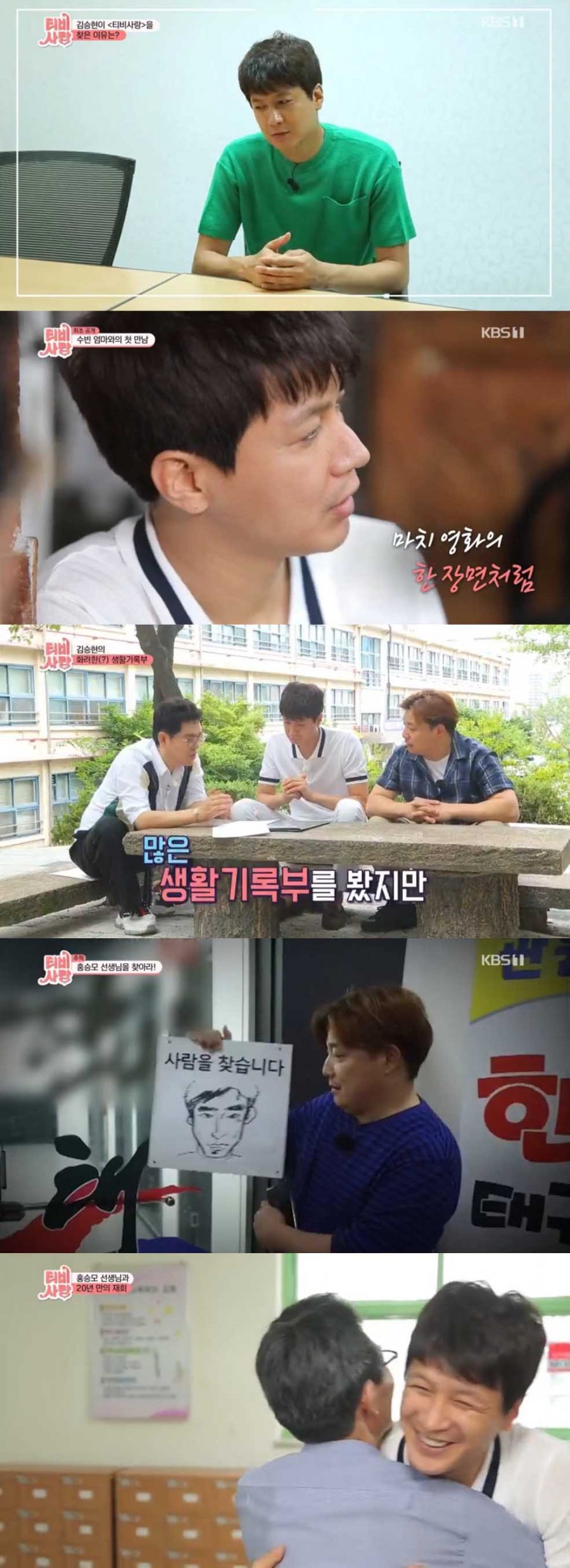 19일 방송된 KBS1 'TV는 사랑을 싣고'에서는 김승현이 미술부 선생님과 감동의 재회를 했다.