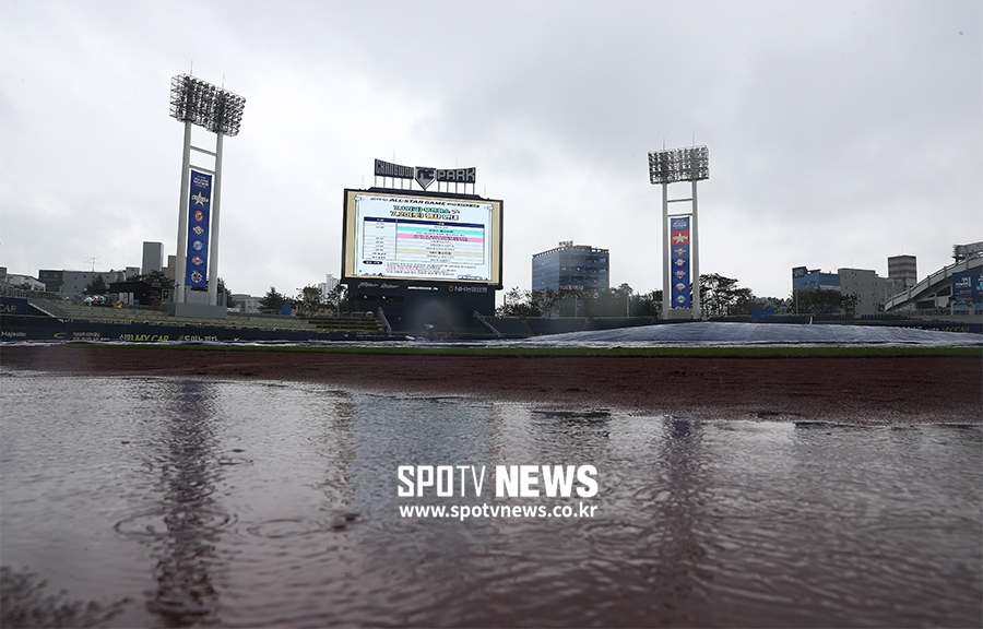 태풍 다나스의 영향으로 우천 연기된 퓨처스 올스타전, 물 고인 창원NC파크
