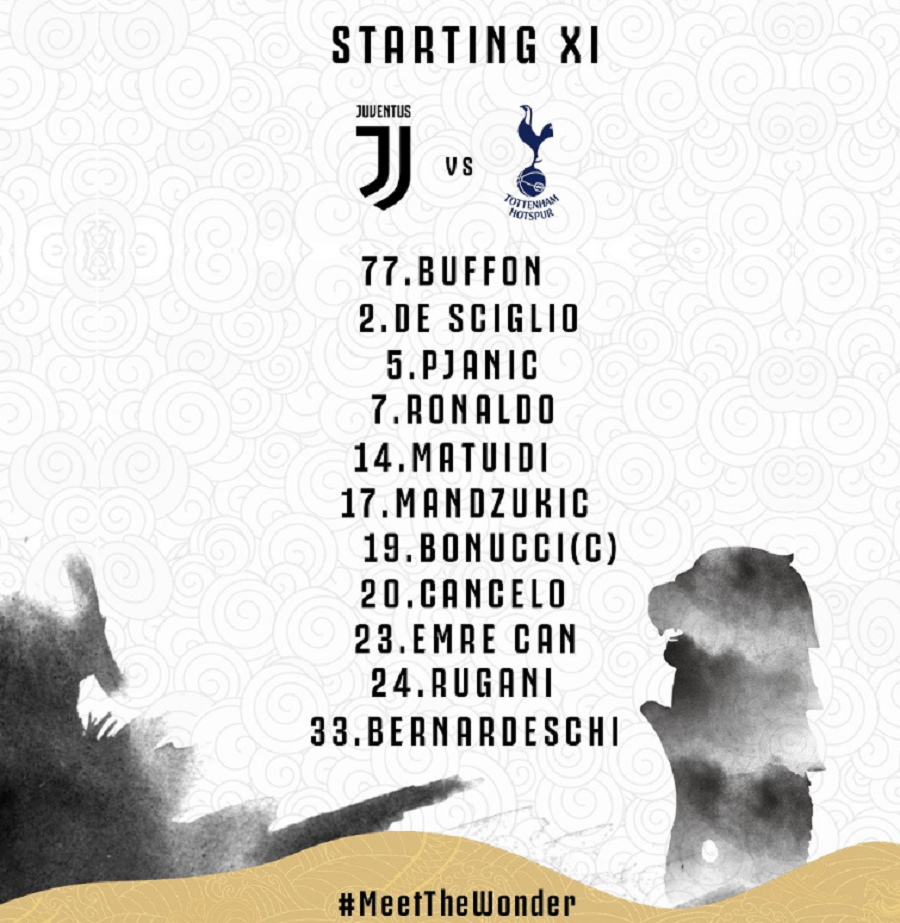 유벤투스는 부폰, 데실리오, 피야니치, 호날두, 마투이디, 만주키치, 보누치, 칸셀로, 찬, 루가니, 베르나르데스키가 출격했다.,