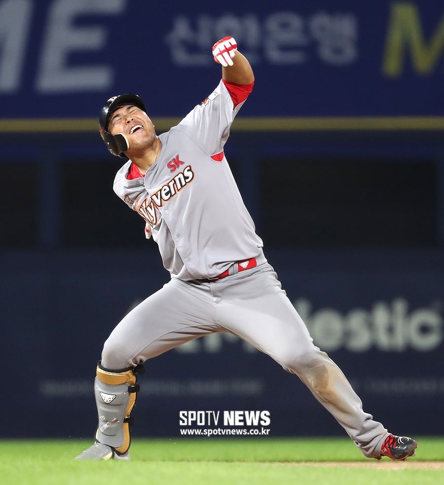 [스포티비뉴스=창원, 곽혜미 기자] 2019 KBO 리그 올스타전이 21일 오후 창원NC파크에서 열렸다. 9회초 1사 1,2루 상황에서 역전 2타점 적시타를 날린 드림 한동민이 포효하고 있다. 스포티비뉴스=창원, 곽혜미 기자