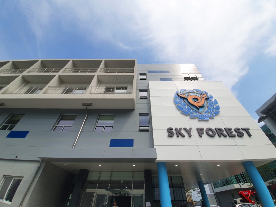 'SKY FOREST'는 대구시 수성구 대흥동 대구체육공원 일원에 지상 4층, 연면적 4,265㎡ 규모로 완공됐다. 43실의 숙소와 웨이트실, 물리치료실, 휴게실, 식당, 사무실 등을 갖추고 있다.