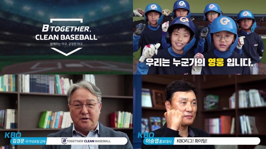 B together, Clean Baseball 영상은 총 3가지로 선수들을 위한 부정행위 방지 교육 영상 2가지와 야구장 전광판에서 상영될 캠페인 영상이며, 올스타 브레이크 이후 후반기 첫 경기인 7월 26일(금)부터 전 구장 전광판을 통해 상영될 예정이다.