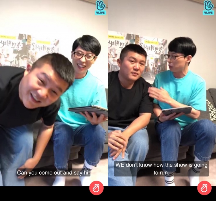마지막으로 유재석은 이날 브이라이브를 짧게 끝내 죄송하다고 거듭 얘기하면서, 본방송에 대한 기대를 당부했다.