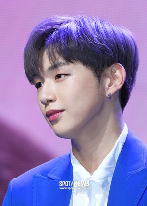 [스포티비뉴스=서울, 곽혜미 기자] 가수 강다니엘 솔로 데뷔 앨범 'Color on me(컬러 온 미)' 발매 기념 쇼케이스가 25일 오후 서울 광진구 광장동 예스24라이브홀에서 열렸다. 강다니엘이 팬들을 바라보고 있다. 스포티비뉴스=서울, 곽혜미 기자
