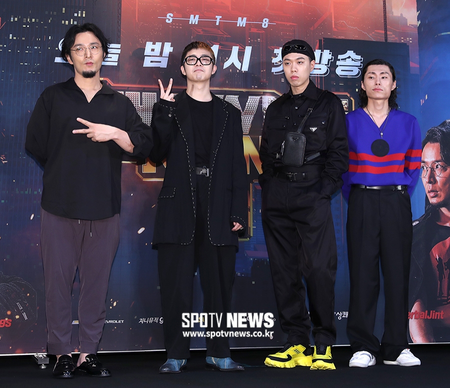 [스포티비뉴스=서울, 곽혜미 기자] Mnet '쇼미더머니8' 제작 발표회가 26일 오전 서울 마포구 상암동 CJ ENM에서 열렸다. 래퍼 버벌진트, 기리보이, 비와이, 밀릭(왼쪽부터)가 포즈를 취하고 있다. 스포티비뉴스=서울, 곽혜미 기자