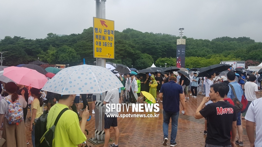 안타까운 사례도 있었다. 이날 오전부터 내린 폭우로 인해 예매했던 입장권을 취소했던 팬들이다. 다시 마음을 바꿔 현장에서 어떻게든 표를 구하려 애를 쓰는 모습이었다. 입장권 판매대 근처를 서성이는 모습도 보였다.
