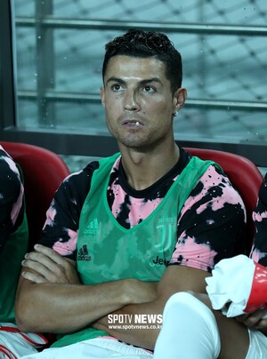 [스포티비뉴스=서울월드컵경기장, 한준 기자] 유벤투스FC와 팀 K리그의 26일 친선 경기 경기 전반전. 벤치에 대기한 포르투갈 축구스타 크리스티아누 호날두(34, 유벤투스)의 모습이 전광판에 나오면 경기장이 떠나갈 듯 함성이 나왔다.