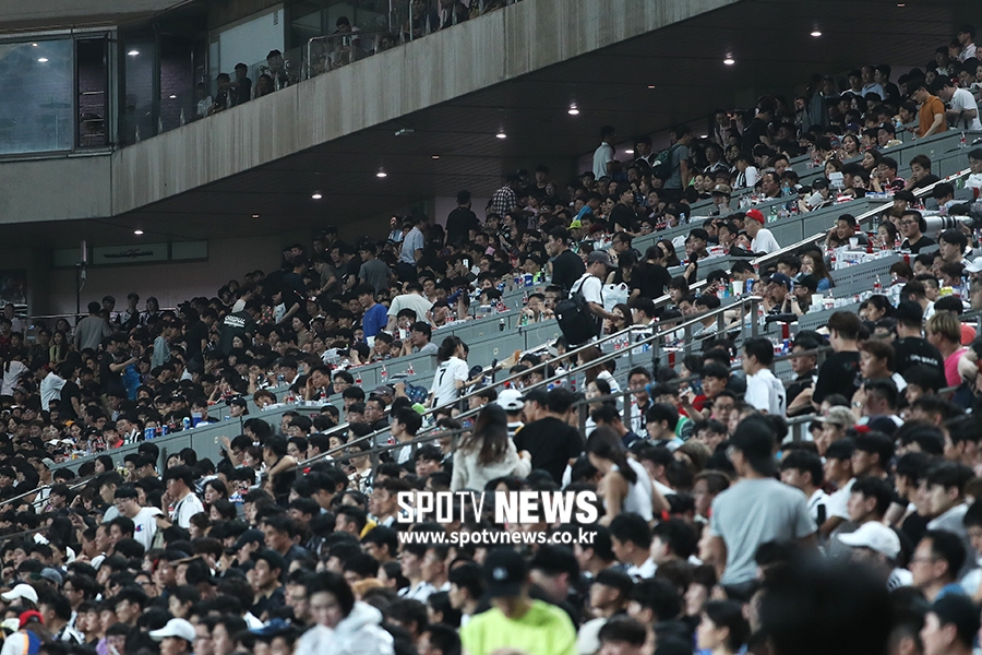 [스포티비뉴스=서울, 곽혜미 기자] 팀 K리그와 세리아A 유벤투스의 친선 경기가 26일 오후 서울 마포구 성산동 서울월드컵경기장에서 열렸다. 호날두가 출전하지 않자 팬들이 경기 종료 전에 떠나고 있다. 스포티비뉴스=서울, 곽혜미 기자