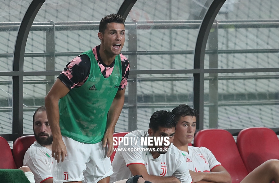 [스포티비뉴스=서울, 한희재 기자] 팀 K리그와 세리아A 유벤투스의 친선 경기가 26일 오후 서울 마포구 성산동 서울월드컵경기장에서 열렸다. 벤치에 앉은 유벤투스 호날두가 팀 공격을 응원하고 있다. 스포티비뉴스=서울, 한희재 기자