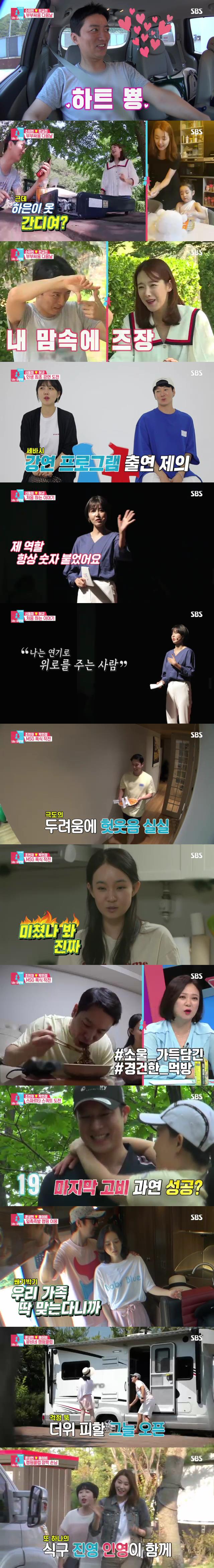 소이현은 “오빠한테 잠깐의 힐링의 시간을 주고 싶었다”라며 인교진을 캠핑장으로 데리고 갔다. 그곳에서 소이현은 집에서 딸 하은이와 미리 준비해 온 닭개장을 끓여줬다. 이어 하은이가 직접 닭고기를 찢는 영상이 공개됐다. 인교진은 감격한 듯 “많이 컸다”라며 영상에서 눈을 떼지 못했다. 그러나 이어 인교진은 “하은이 옷 간디여?”라며 하은이의 옷에 대해 언급해 웃음을 안겼다.