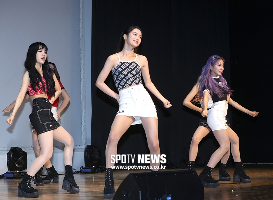 [스포티비뉴스=서울, 곽혜미 기자] 걸그룹 버스타즈 'Pinky Promise' 발매 기념 컴백 쇼케이스가 31일 오후 서울 강서구 가양동 호서예술실용전문학교 대강당에서 열렸다. 버스터즈가 무대를 펼치고 있다. 스포티비뉴스=서울, 곽혜미 기자