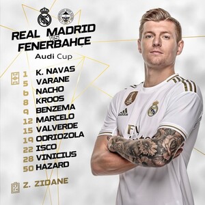 경기 전 선발 명단이 발표됐다. 올여름 야심차게 영입한 아자르가 등 번호 50번을 달고 페네르바체전에 뛴다. 이스코, 비니시우스, 카림 벤제마 등과 호흡할 예정이다. 골문은 케일러 나바스가 지켰다.