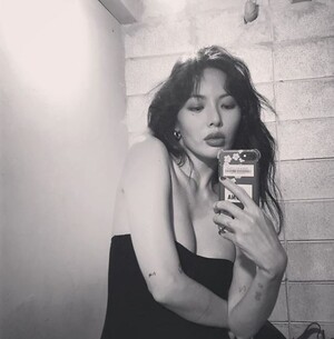 1일 현아는 자신의 인스타그램에 여러 장의 사진을 게재했다. 공개된 흑백 사진에는 현아가 몸에 밀착된 의상을 입은 채로 다양한 포즈를 취하고 있다. 볼륨 넘치는 몸매와 입술, 매끈한 보디라인까지 그의 섹시한 매력을 한층 부각시켰다.