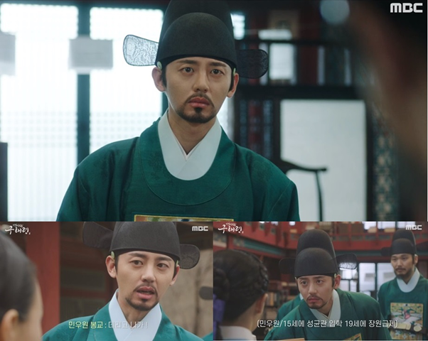앞서 예문관 권지들이 내명부에 끌려가 고초를 치르게 된 장면에서 민우원은 "지금 뭐하시는 겁니까?"라고 외치며 등장해 그들을 위기에서 구해냈다. 특히 서슬 퍼렇게 목소리를 높이며 내명부의 법도를 따지는 상궁에게 그는 "예문관 권지들입니다. 어찌 내명부의 법도를 따라야 한다는 겁니까?"라고 되물으며 내명부의 주장을 논리적으로 반박했다. 이어 "데리고 나가"라며 권지들을 보호하는 모습으로 관심을 모았다.