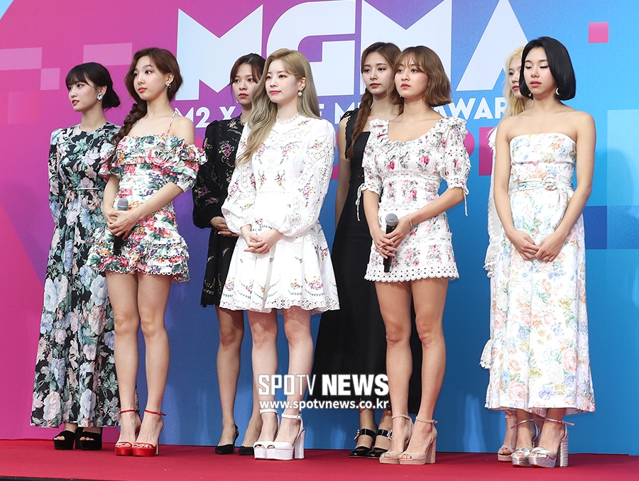 [스포티비뉴스=서울, 곽혜미 기자] '2019 M2 X GENIE MUSIC AWARDS(2019 MGMA)' 레드카펫 행사가 1일 오후 서울 송파구 방이동 올림픽공원 KSPO DOME에서 열렸다. 트와이스가 포즈를 취하고 있다. 스포티비뉴스=서울, 곽혜미 기자