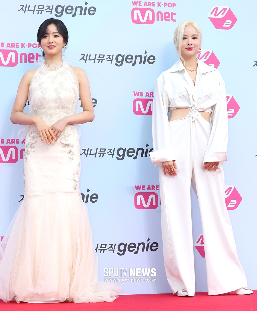 [스포티비뉴스=서울, 곽혜미 기자] '2019 M2 X GENIE MUSIC AWARDS(2019 MGMA)' 레드카펫 행사가 1일 오후 서울 송파구 방이동 올림픽공원 KSPO DOME에서 열렸다. 에이핑크 윤보미(왼쪽)와 EXID 솔지가 포즈를 취하고 있다. 스포티비뉴스=서울, 곽혜미 기자