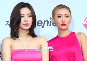 [스포티비뉴스=서울, 곽혜미 기자] '2019 M2 X GENIE MUSIC AWARDS(2019 MGMA)' 레드카펫 행사가 1일 오후 서울 송파구 방이동 올림픽공원 KSPO DOME에서 열렸다. 마마무 휘인(왼쪽)과 화사가 포즈를 취하고 있다. 스포티비뉴스=서울, 곽혜미 기자