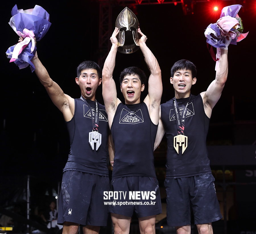 [스포티비뉴스=서울, 곽혜미 기자] 복합 스포츠 레이스 스파이더 얼티밋 챌린지(SPYDER ULTIMATE CHALLENGE) 네 번째 대회가 3일 오후 서울 중구 광화문광장에서 열렸다. 남자부 2위 정준성, 1위 남호현, 3위 이상주(왼쪽부터)가 시상식에서 포즈를 취하고 있다. 스포티비뉴스=서울, 곽혜미 기자