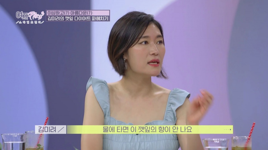 또, 음식을 먹은 후엔 '아이스 깻잎 워터'를 마시며 카페를 방불케 하는 다이어트 음료를 만들어내며 남편과 함께 시원한 디저트를 즐긴다. 김미려가 해먹는 다이어트 음식과 음료 만드는 법은 방송을 통해 확인할 수 있다.