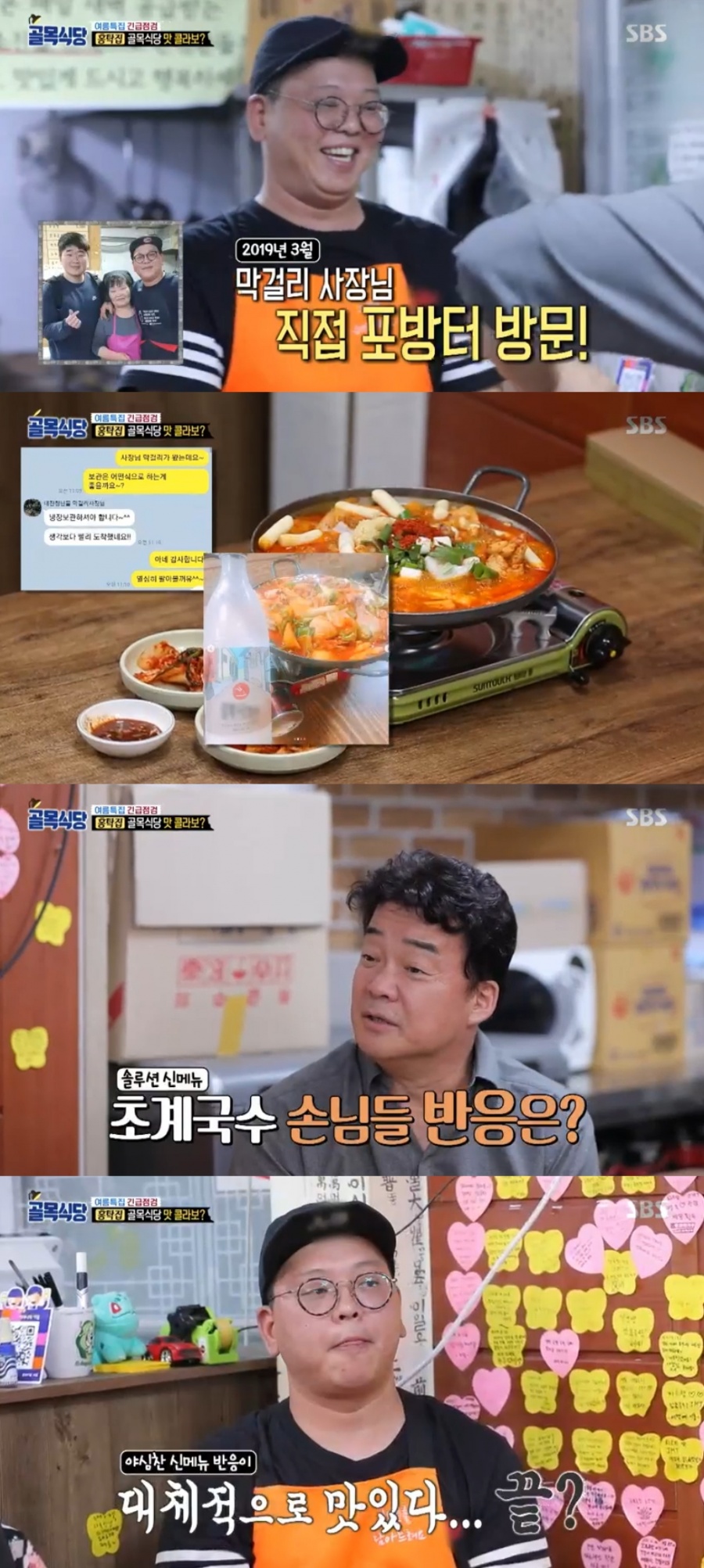 백종원은 신 메뉴 초계국수의 반응을 살폈다. "대체적으로 다 맛있다고"라 대답하는 사장의 말에 당황했으나 또다시 어머니가 "닭곰탕 보다 한 20그릇 더 나가요"라 말해 자존심을 회복했다. 어머니는 이어 닭곰탕에 비해 초계국수가 일이 늘어 그런 거라고 해명해 웃음을 자아냈다.