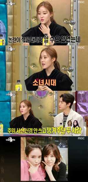 이어 효민은 "내가 힘든 게 아니라, 대중의 좋지 않은 시선으로 나 때문에 상대가 피해가 갈까 걱정했다. 그런데 함께 '청춘불패' 방송을 출연했던 소녀시대 유리와 써니 덕분에 활동을 포기하지 않을 수 있었다"라고 밝히며 친구들에 고마움을 전했다.