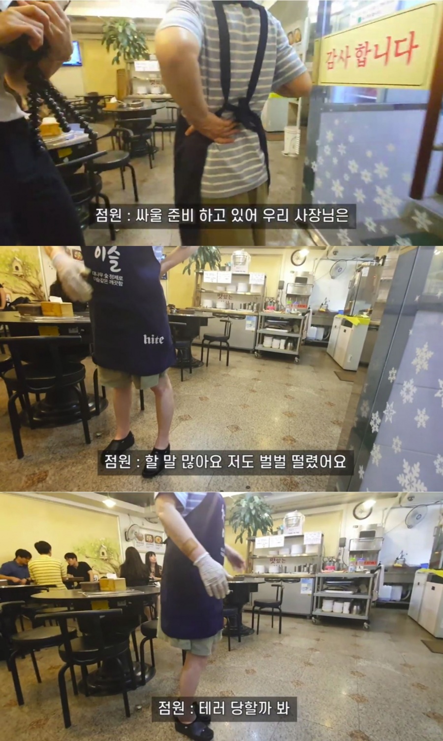 이어 '이대 백반집' 점원의 인터뷰가 공개됐는데, 점원은 "(방송에서)나온 말 때문에 너무 충격을 받았다. 나쁜 점만 골라서 (방송에) 나갔다. 사람을 아예 사기꾼으로 만들어 놨다. 속이 부글부글 끓어서 장사를 못하겠다"며 "우리 사장님은 싸울 준비를 하고 있다. 우리도 할 말이 많다"고 말했다. 해당 유튜브 촬영 시점은 이미 '골목식당' 촬영과 솔루션이 완료된 시기.