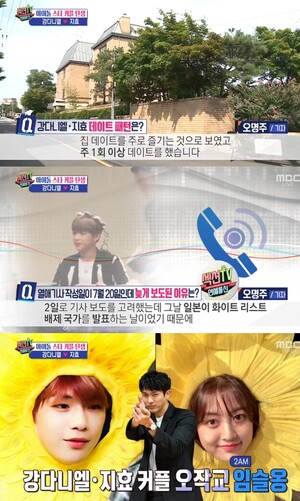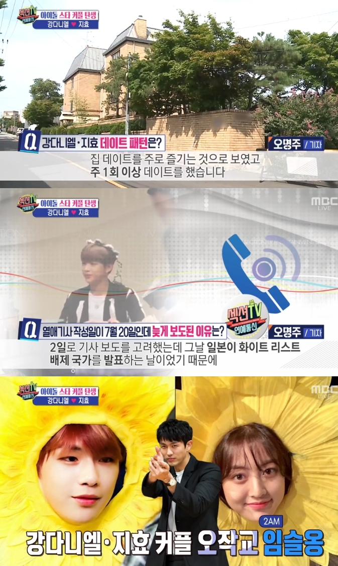 8일 밤 방송된 MBC 예능 프로그램 '섹션TV 연예통신(이하 섹션)'에서는 최근 전국을 들썩이게 만든 강다니엘과 지효의 열애설 비하인드 스토리가 공개됐다.
