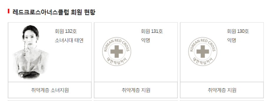 이로써 태연은 레드 크로스 아너스 클럽의 132번째 회원으로 적십자 공식 홈페이지에 이름을 올렸다. 태연이 기부한 1억원은 취약계층 여학생들의 보건 위생 용품을 지원하는데 사용될 예정이다.