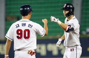 이어 유한준이 우전 적시타를 치며 2루 주자 심우준을 홈으로 불러들였다.