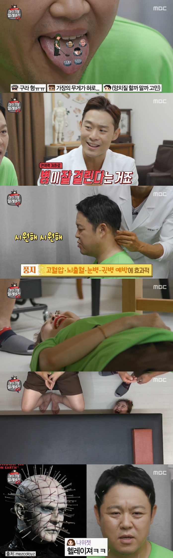 이후 한혁규 한의사는 김구라와 장영란을 위한 처방을 시작했다. 한의사는 김구라의 안면부에 가득 침을 놓았고 김구라는 "전혀 아프지 않다 시원하다"라고 허세를 떨어 웃음을 자아냈다. 장영란은 몸의 전면부에 침을 맞은 상태로 고슴도치가 된 김구라를 보며 폭소해 웃음을 더했다.