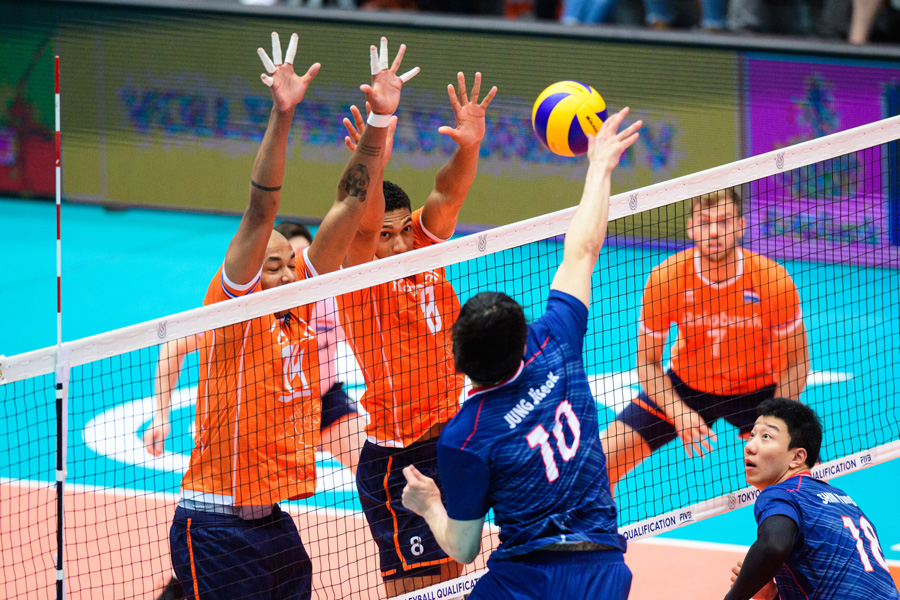 한국은 9일(이하 한국 시간) 네덜란드 로테르담에서 열린 2020년 도쿄 올림픽 대륙간 예선 B조 첫 경기에서 홈 팀 네덜란드에 세트스코어 2-3(25-23 27-25 23-25 20-25 12-15)으로 졌다.