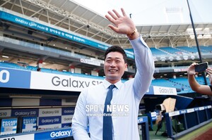 [스포티비뉴스=대구, 한희재 기자] 삼성 라이온즈와 KIA 타이거즈의 2019 KBO리그 경기가 10일 오후 대구 삼성라이온즈파크에서 열린다. 삼성에 복귀한 오승환이 처음으로 야구장을 찾아 팬들에게 손 흔들고 있다. 스포티비뉴스=대구, 한희재 기자