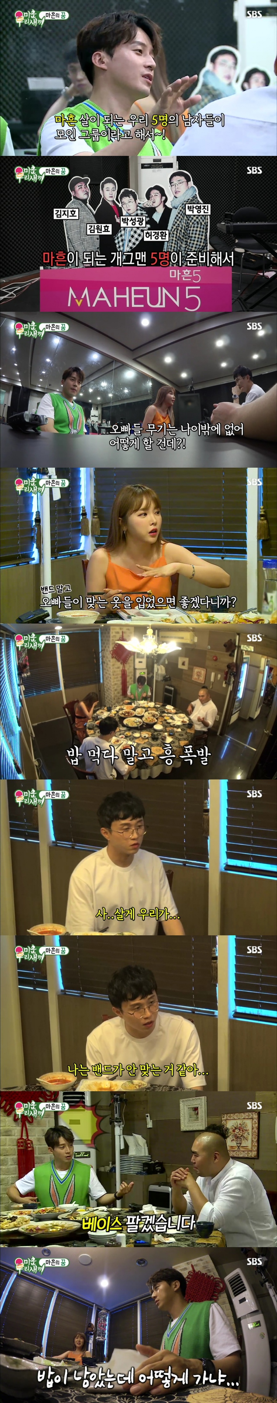 이날 홍진영은 개그맨 허경환의 부름을 받고 음악 연습실로 향했다. 허경환은 진영에게 본인을 포함해 마흔살이 되는 박성광, 김지호, 김원효, 박영진 다섯 사람이 밴드를 결성했다며 ‘마흔 파이브’를 소개했다. 진영은 “셀럽파이브를 따라한거냐?”며 리드 보컬인 허경환의 음정이 도통 맞지 않자 “오빠들 무기는 나이밖에 없어. 어떻게 할건데?!” “오빠들 나이에 맞는 옷을 입었으면 좋겠다”며 현실적인 조언으로 밴드 포기를 권유했다.
