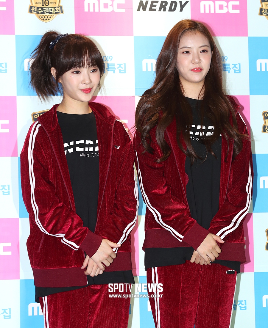 [스포티비뉴스=고양, 곽혜미 기자] MBC '2019 추석특집 아이돌스타 선수권대회' 출근길 포토월 행사가 12일 오전 경기도 고양실내체육관에서 진행됐다. 공원소녀 앤, 레나가 포즈를 취하고 있다. 스포티비뉴스=고양, 곽혜미 기자