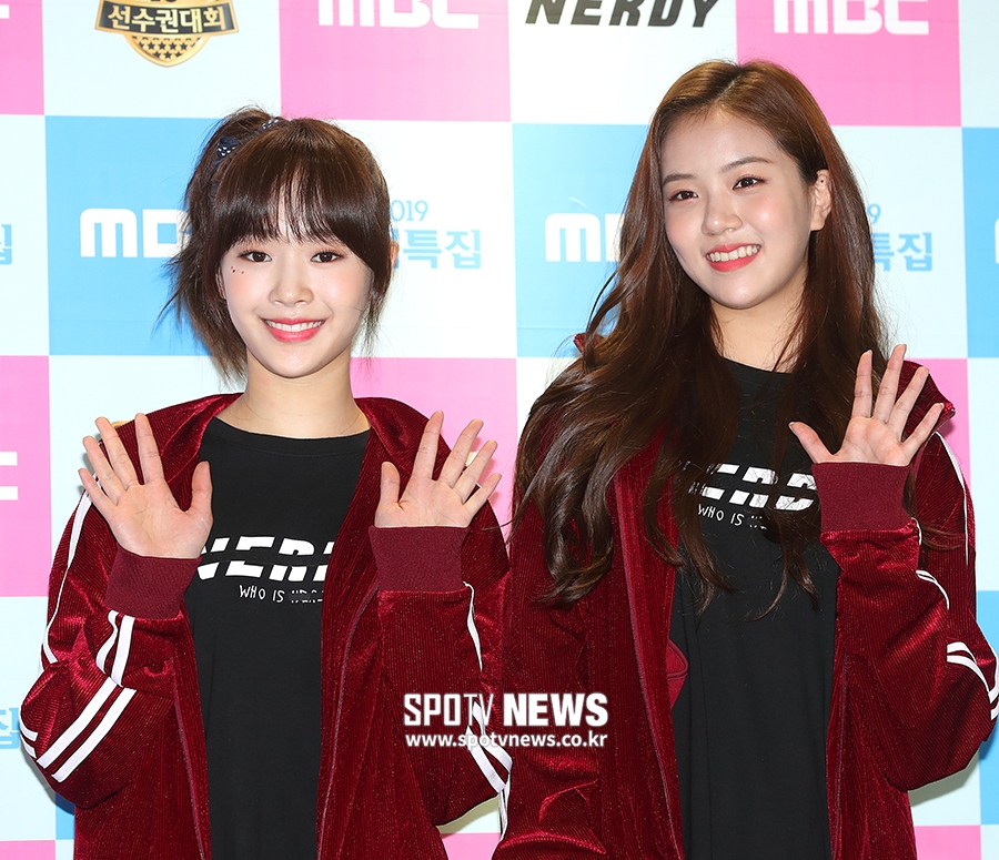 [스포티비뉴스=고양, 곽혜미 기자] MBC '2019 추석특집 아이돌스타 선수권대회' 출근길 포토월 행사가 12일 오전 경기도 고양실내체육관에서 진행됐다. 공원소녀 앤, 레나가 포즈를 취하고 있다. 스포티비뉴스=고양, 곽혜미 기자