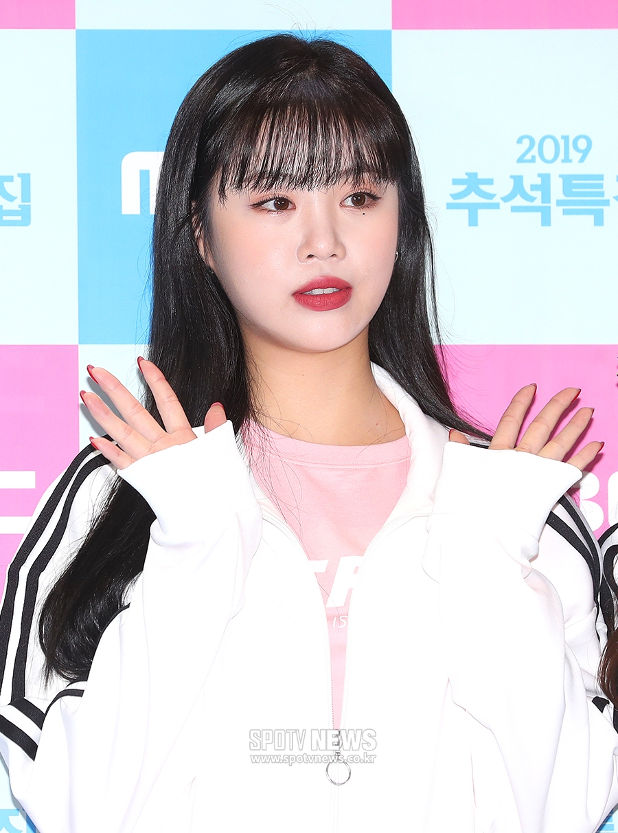 [스포티비뉴스=고양, 곽혜미 기자] MBC '2019 추석특집 아이돌스타 선수권대회' 출근길 포토월 행사가 12일 오전 경기도 고양실내체육관에서 진행됐다. (여자)아이들 수진이 포즈를 취하고 있다. 스포티비뉴스=고양, 곽혜미 기자