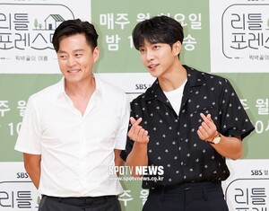 [스포티비뉴스=서울, 한희재 기자] SBS 예능 ‘리틀 포레스트’ 제작발표회가 12일 오후 서울 양천구 목동 SBS에서 열렸다. 가수 이승기가 배우 이서진에게 사진 촬영을 위해 포즈를 권하고 있다. 스포티비뉴스=서울, 한희재 기자