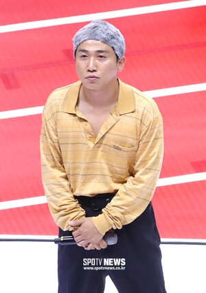 [스포티비뉴스=고양, 곽혜미 기자] MBC '2019 추석특집 아이돌스타 선수권대회' 출근길 포토월 행사가 12일 오전 경기도 고양실내체육관에서 진행됐다. UV 유세윤이 축하 무대를 준비하고 있다. 스포티비뉴스=고양, 곽혜미 기자