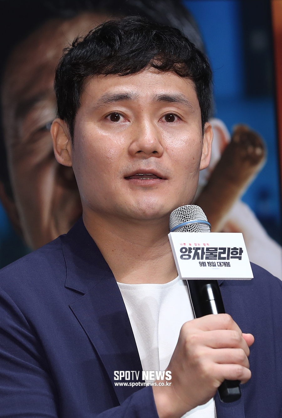 [스포티비뉴스=서울, 곽혜미 기자] 영화 '양자물리학' 제작 보고회가 13일 오전 서울 강남구 압구정CGV에서 열렸다. 이성태 감독이 인사말을 하고 있다. 스포티비뉴스=서울, 곽혜미 기자
