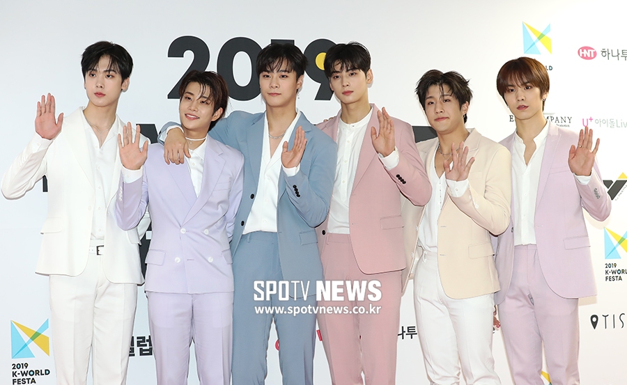 [스포티비뉴스=서울, 한희재 기자] ‘2019 케이월드 페스타’ 개막 포토월 행사가 15일 오후 서울 강동구 방이동 서울올림픽공원 체조경기장에서 열렸다. 아이돌 아스트로가 사진 촬영을 위해 포즈를 취하고 있다. 스포티비뉴스=서울, 한희재 기자