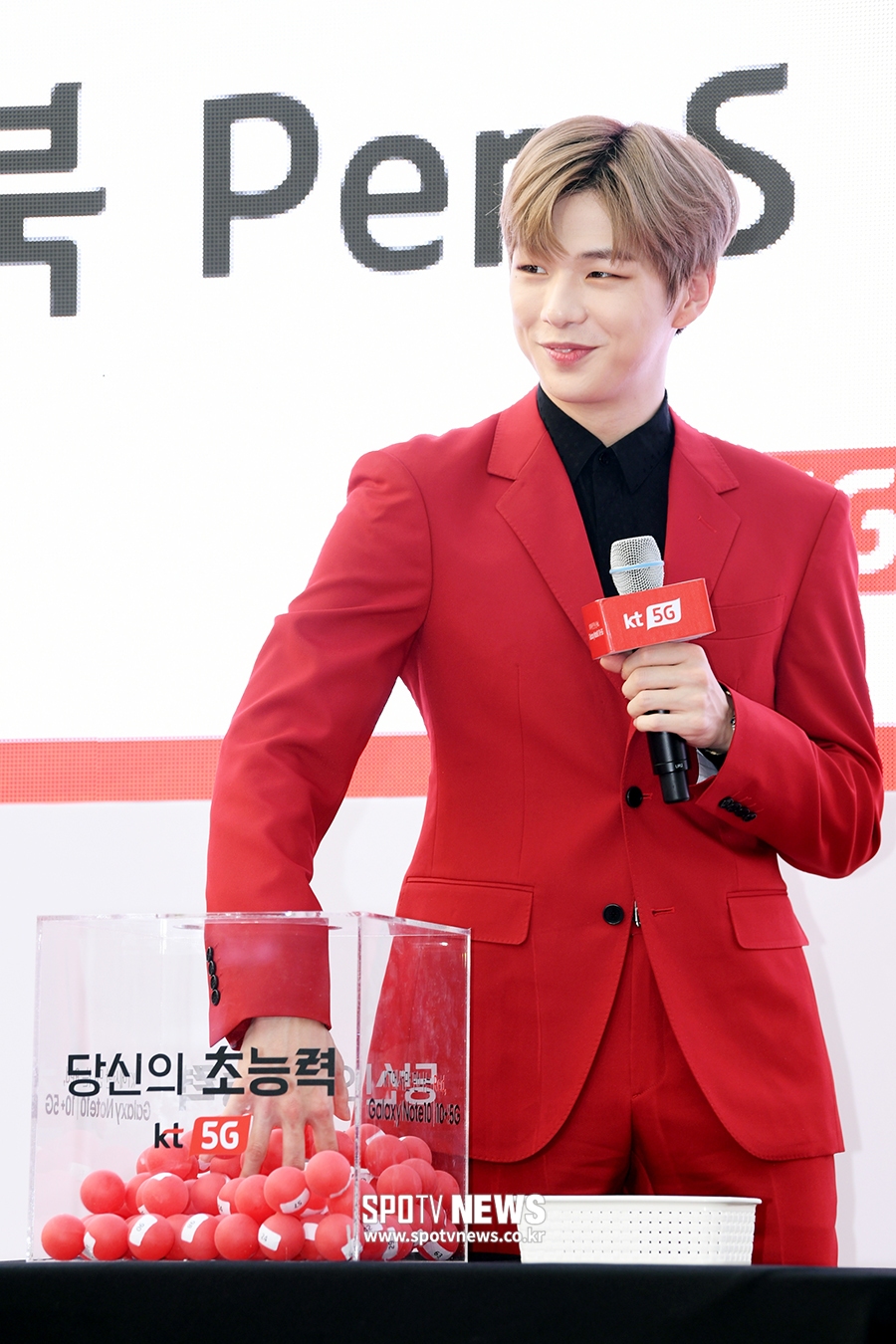 [스포티비뉴스=서울, 한희재 기자] 19일 오후 서울 중구 노보텔 앰배서더 동대문에서 KT '갤럭시노트10 사전예약 가입자 100명 초청 런칭 전야파티 Red on me'가 열렸다. 가수 강다니엘이 인사하고 있다. 스포티비뉴스=서울, 한희재 기자