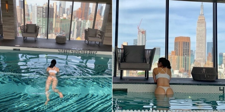 공개된 사진 속 사유리는 수영장에서 수영을 즐기고 있는 모습. 큰 창가로 미국 뉴욕의 풍경이 보이고 있지만, 사유리의 남다른 몸매가 시선을 붙잡고 있다. 잘록한 허리 라인과 볼륨감 넘치는 '애플힙'이 그가 얼마나 열심히 운동에 임했는지 짐작케 한다.