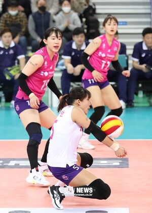 [스포티비뉴스=인천, 곽혜미 기자] 2019-2020 도드람 V리그 여자부 흥국생명과 현대건설의 경기가 4일 오후 인천 계양체육관에서 열렸다. 흥국생명 김해란이 리시브를 하고 있다.스포티비뉴스=인천, 곽혜미 기자